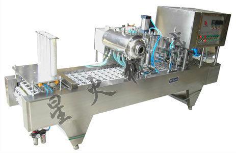 具有自動落杯、灌裝、消菌、光電跟蹤、封口(蓋)、自動對芯剪切、廢膜回收等功能。