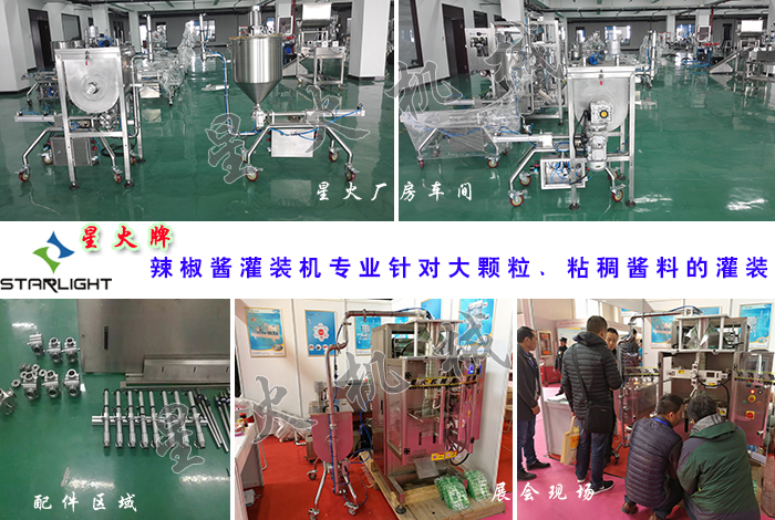 星火包裝機(jī)械長(zhǎng)期以來(lái)一直致力于醬料包裝機(jī)、醬料灌裝機(jī)的生產(chǎn)銷售,專門生產(chǎn)出針對(duì)大顆粒醬料的灌裝,在國(guó)內(nèi)備受廣大企業(yè)的關(guān)注與信賴,為了更好的回饋新老客戶的厚愛(ài)支持,我們始終保證質(zhì)量?jī)?yōu)越,技術(shù)先進(jìn),服務(wù)周到。